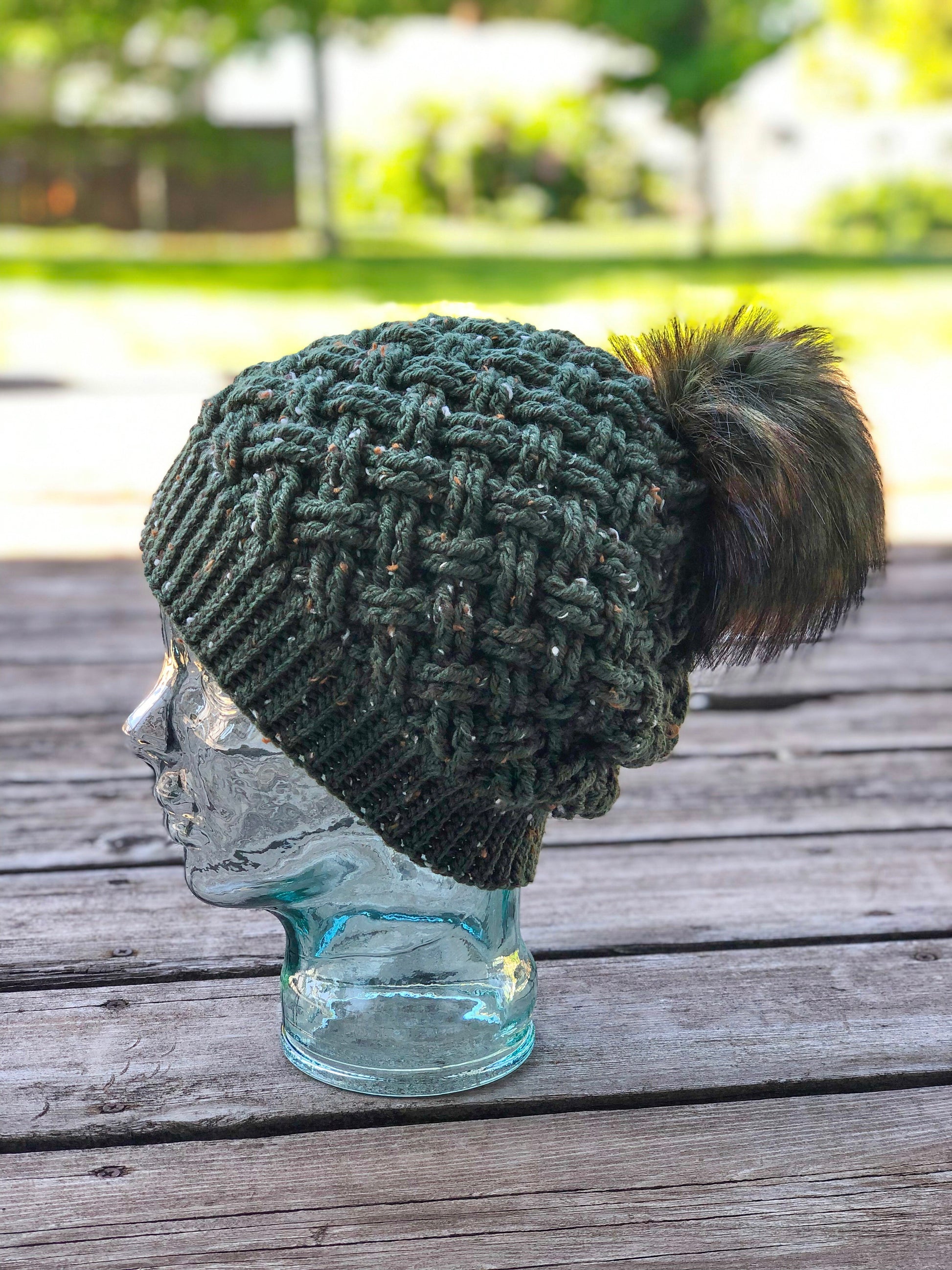 This is a PDF file for a crochet pattern to complete a textured slouch (from the bottom up using a slip stitch ribbing) with a diagonal basket weave stitch.  This pattern is a hybrid of my Diagonal Weave Slouch and Tundra Weave Slouch patterns (see photo comparison).