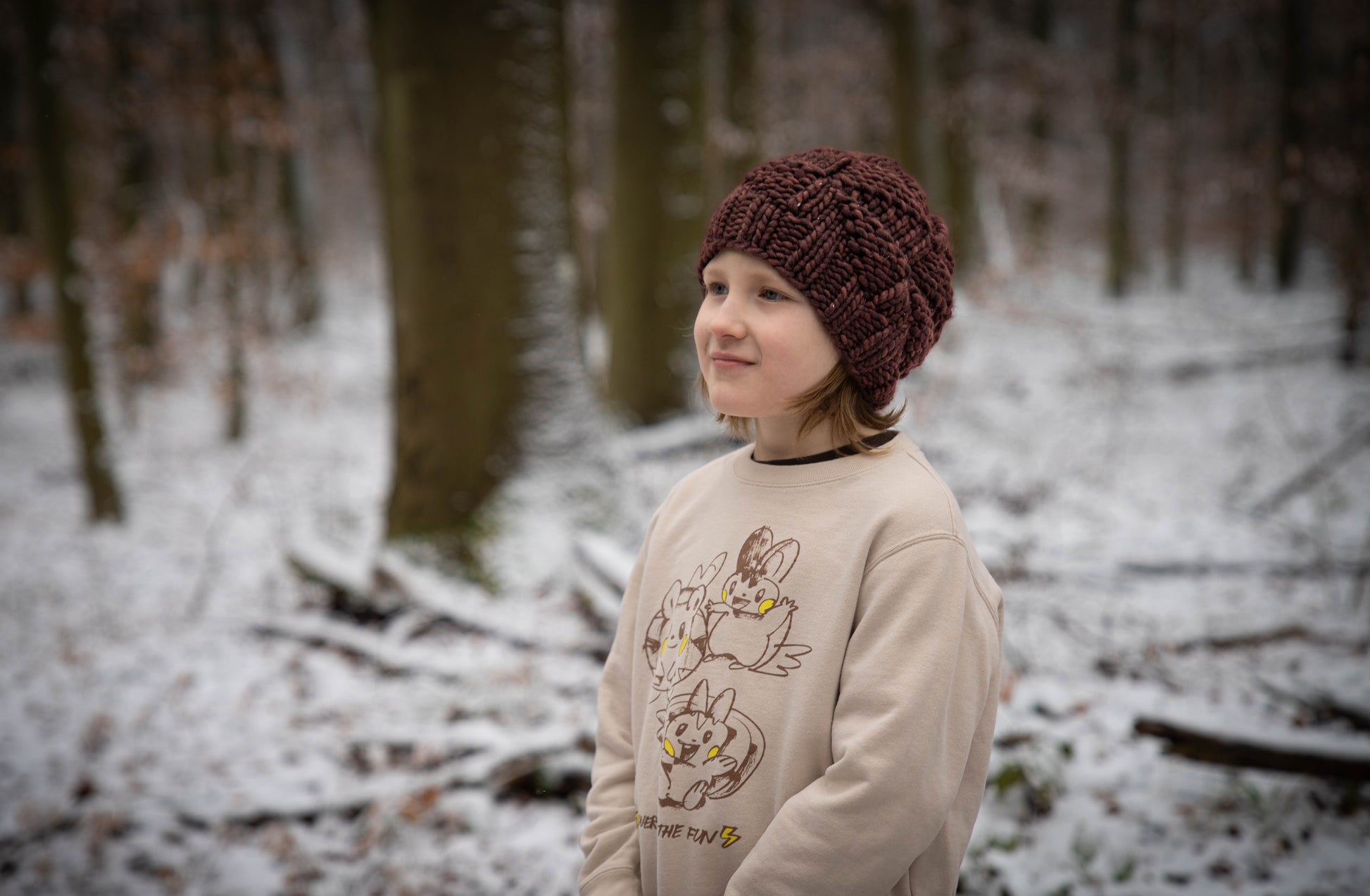 This is a PDF knit pattern for a geometric design beanie worked from the bottom up. This pattern includes 2 versions of the stitch, both with 3 sizes. UPDATE: Now also includes instructions for 2 sizes in super bulky weight yarn.