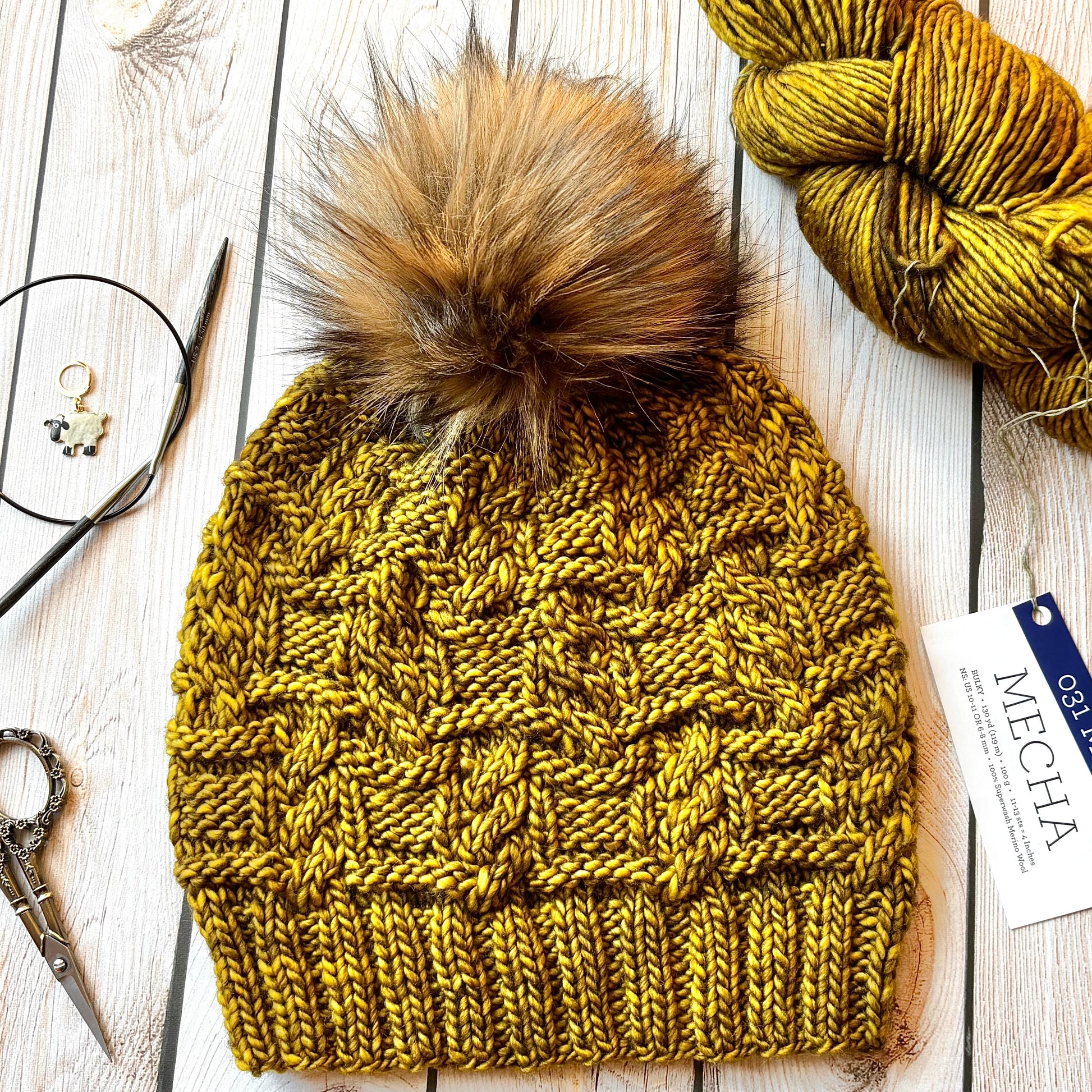 Pattern: Would you like to knit your own hat? To purchase the knit pattern, see the Boxed Cables Beanie knit pattern.