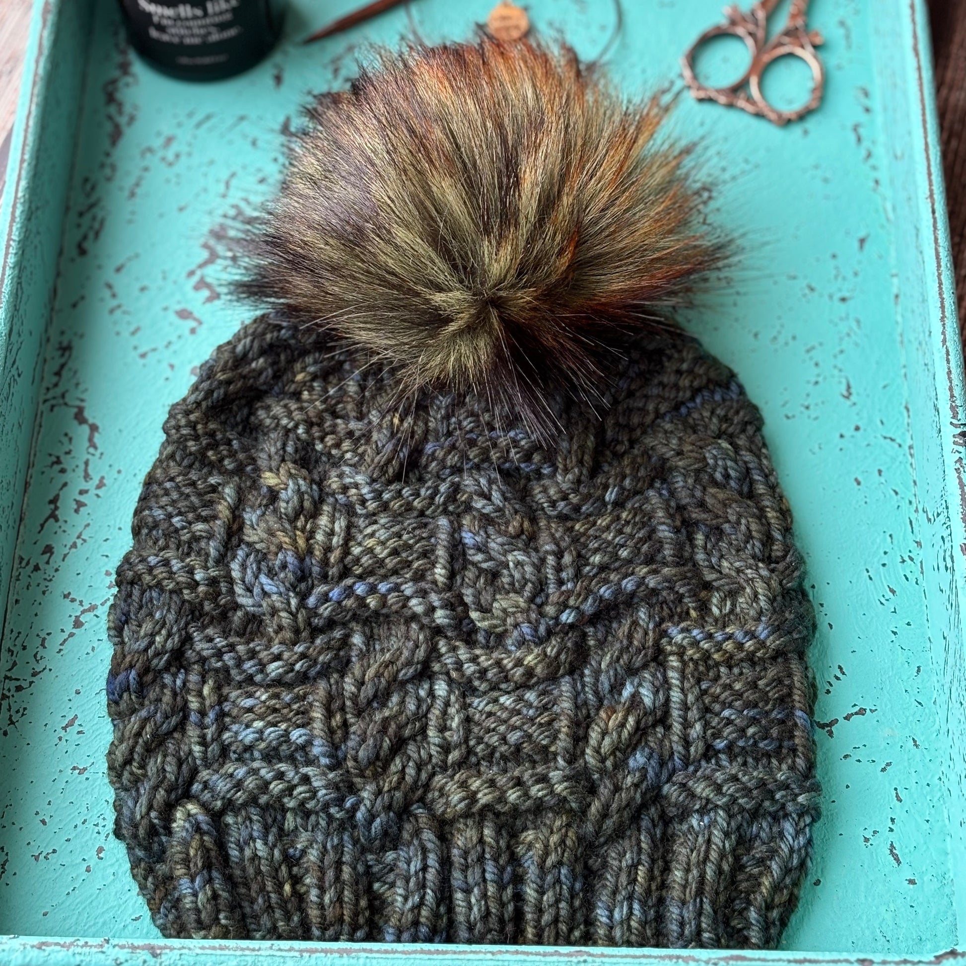 Boxed Cables Beanie | LUXURY Handmade 100% Merino Wool Knit Beanie | Malabrigo Chunky | Detachable Faux Fur Pom Pom | SMALL ADULT size | Ready To Ship