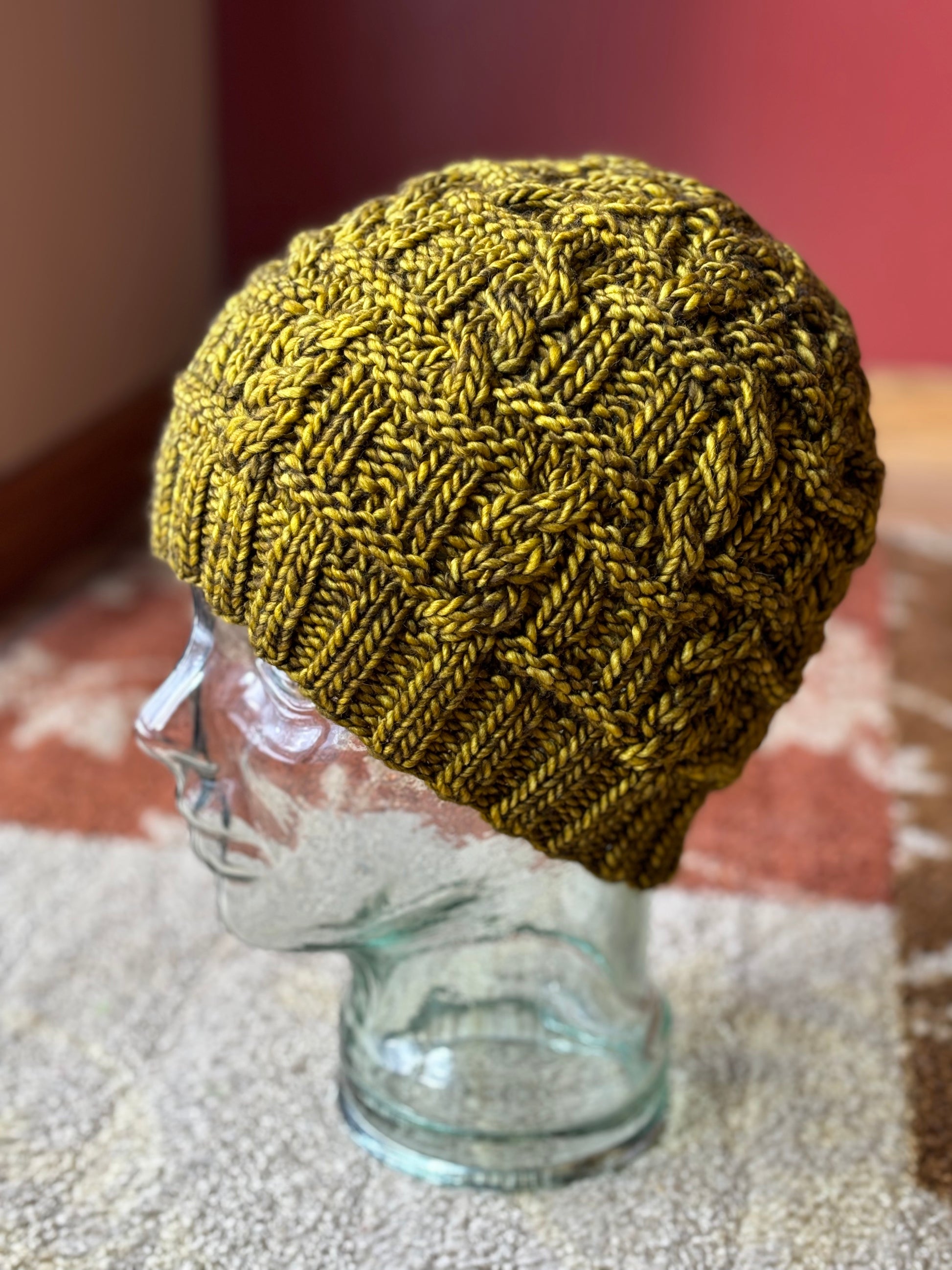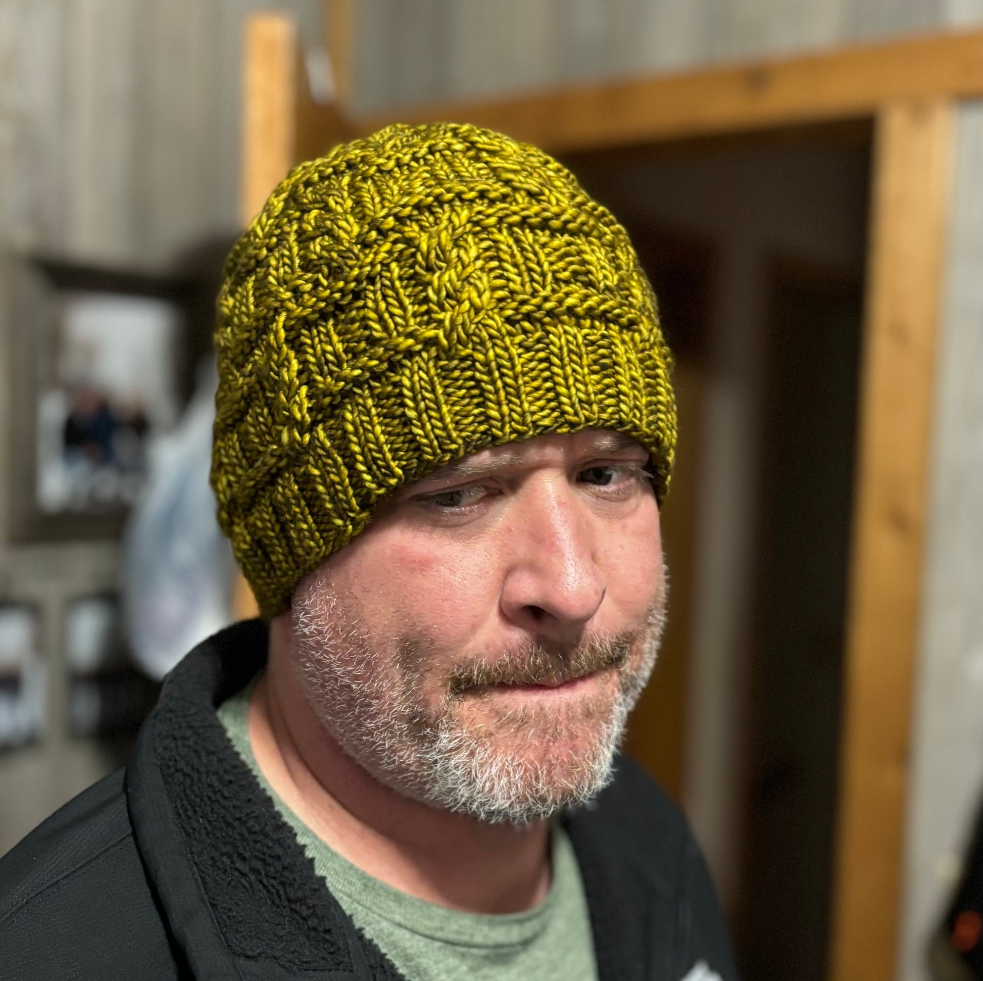 Pattern: Would you like to knit your own hat? To purchase the knit pattern, see the Boxed Cables Beanie knit pattern.