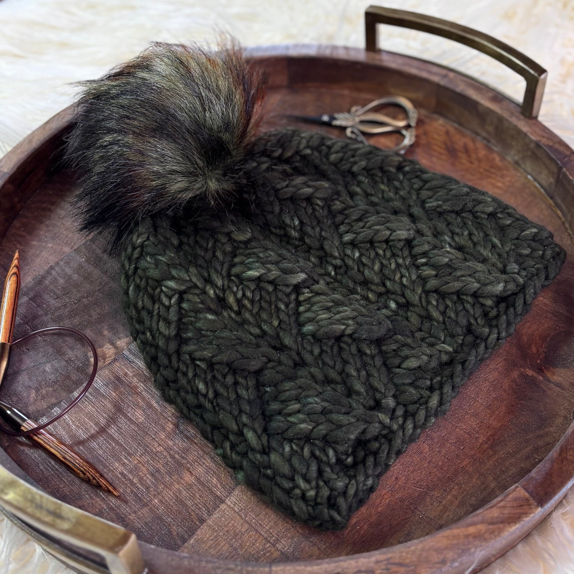 Convergence Beanie | LUXURY Handmade 100% Merino Wool Knit Beanie | Malabrigo Rasta | Detachable Faux Fur Pom Pom | ADULT size | Ready To Ship