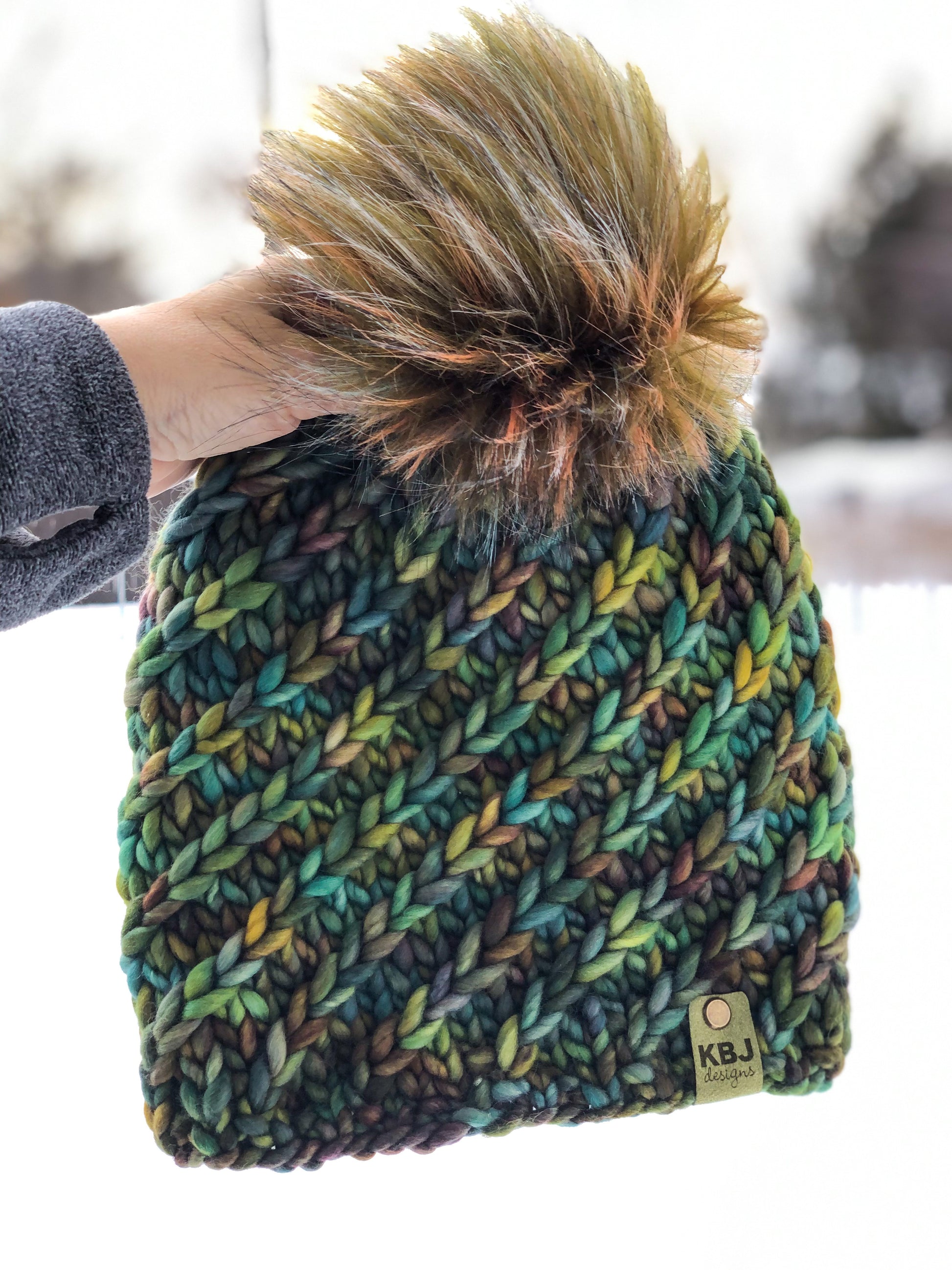 Convolution Beanie | LUXURY Handmade 100% Merino Wool Knit Beanie | Malabrigo Rasta | Detachable Faux Fur Pom Pom | ADULT size | Ready To Ship