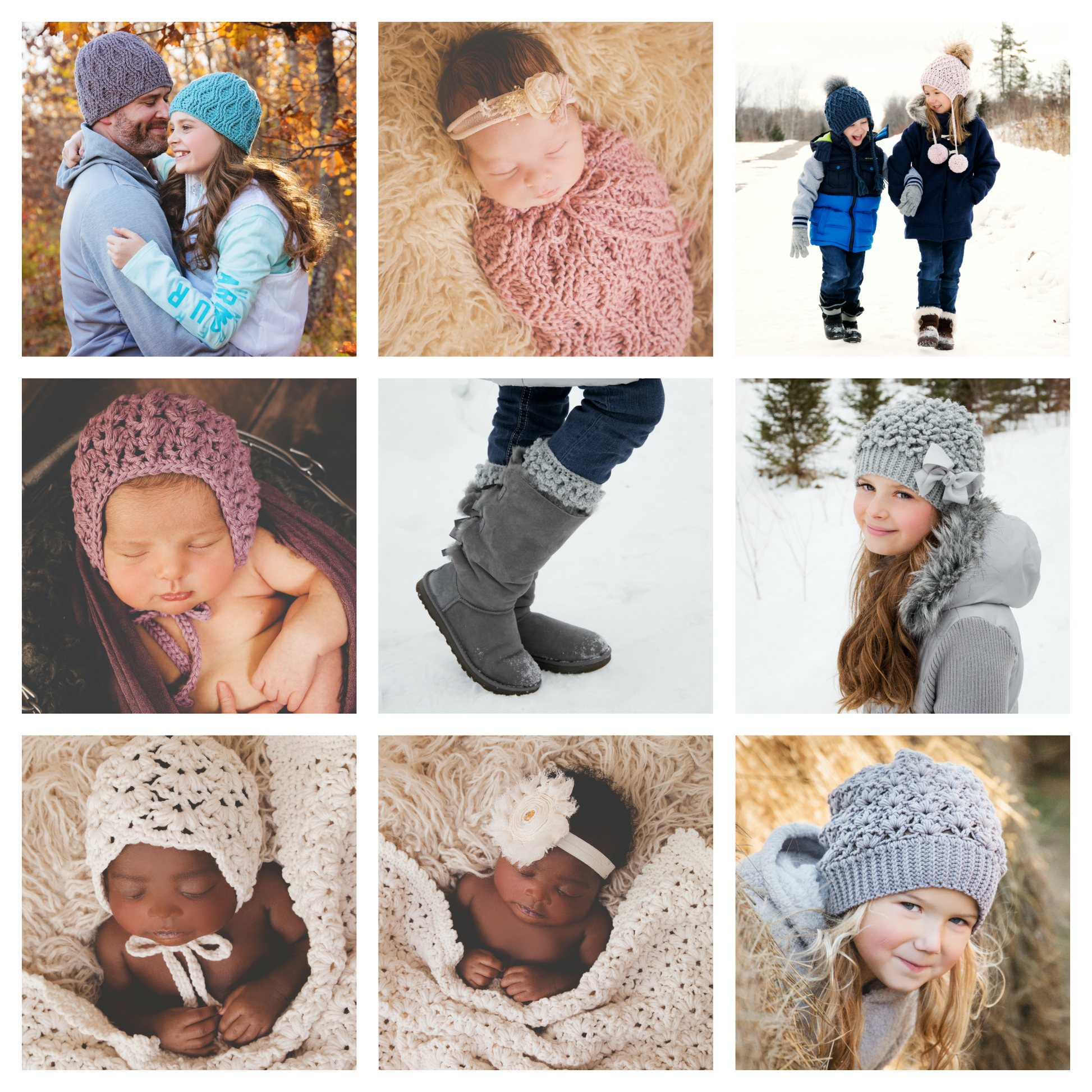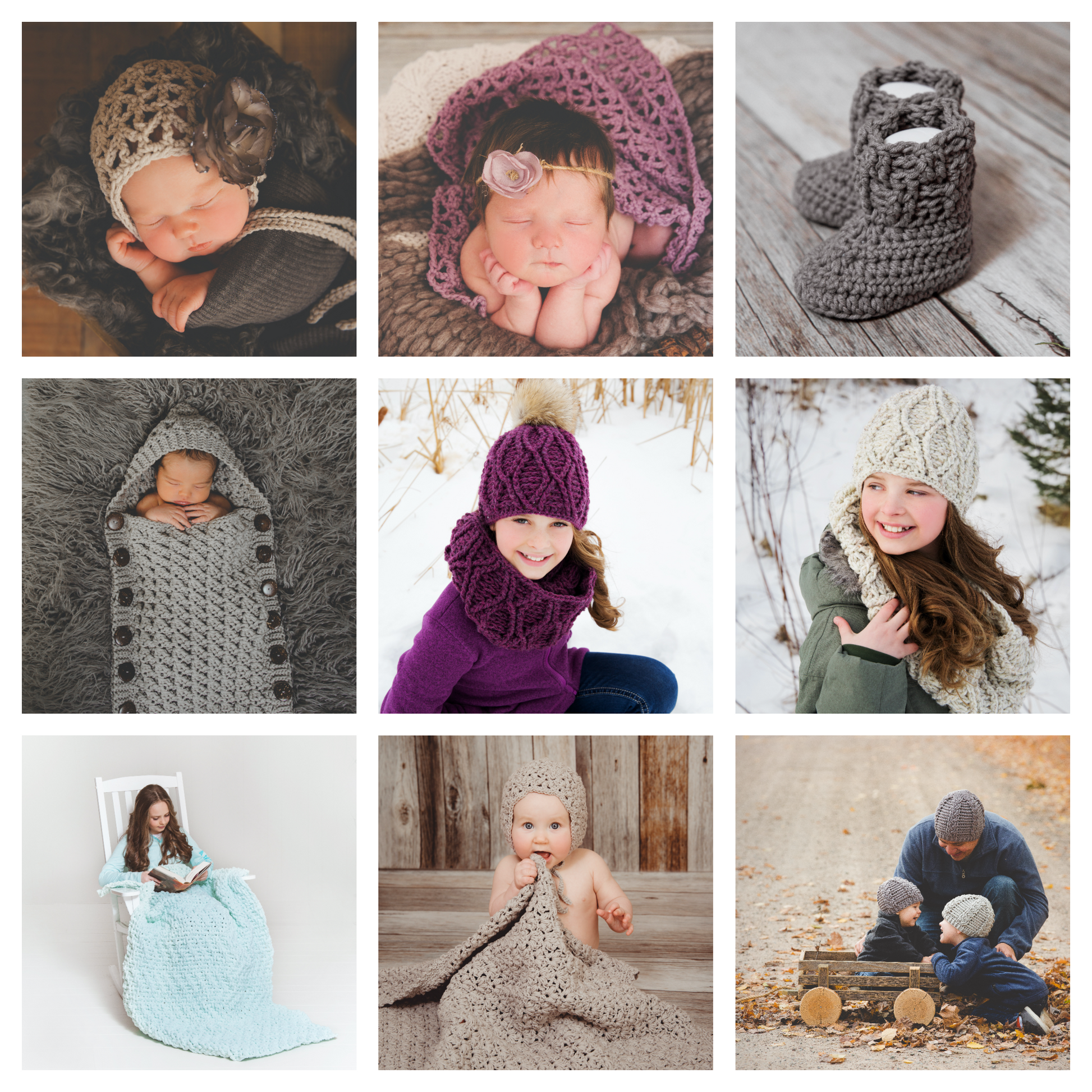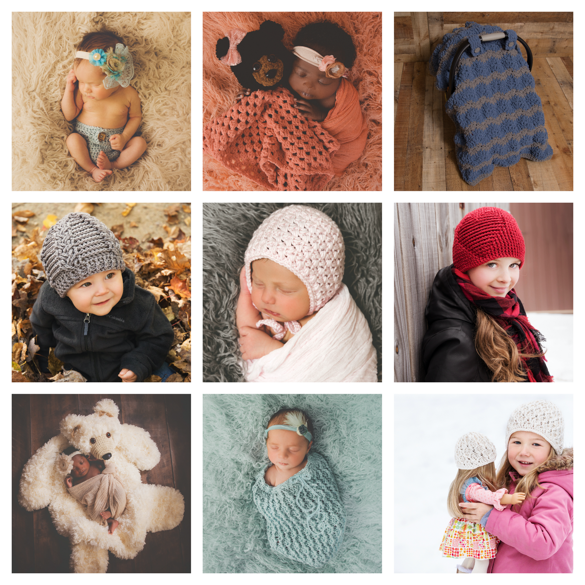 The patterns in this book are a collection of mostly baby patterns in 3 categories; Heirloom Keepsakes & Baby Shower Gifts, Photography Props & Nursery Décor, and Big Kids & Cold Weather Accessories. The third chapter includes patterns that have sizes all the way up to large adult for the whole family. Please see photos for examples of each pattern. Most patterns in this book are written for an intermediate skill level which means you must be able to follow a written crochet pattern and know basic crochet stitches.