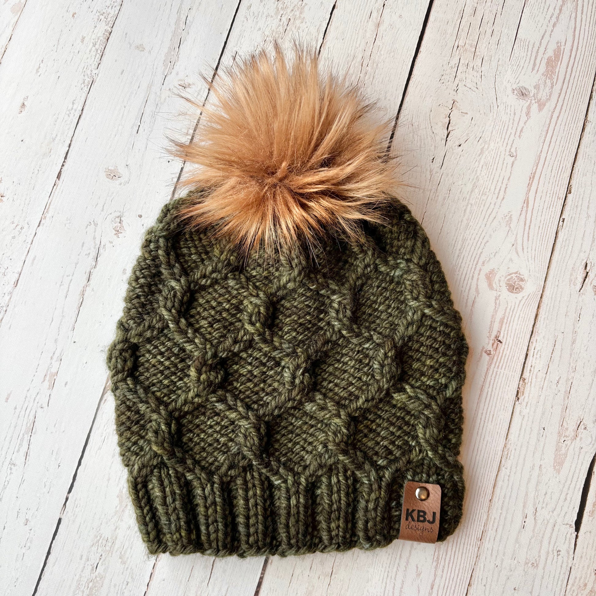 Entangled Beanie | LUXURY Handmade 100% Merino Wool Knit Beanie | Malabrigo Chunky | Detachable Faux Fur Pom Pom | CHILD Size | Ready To Ship