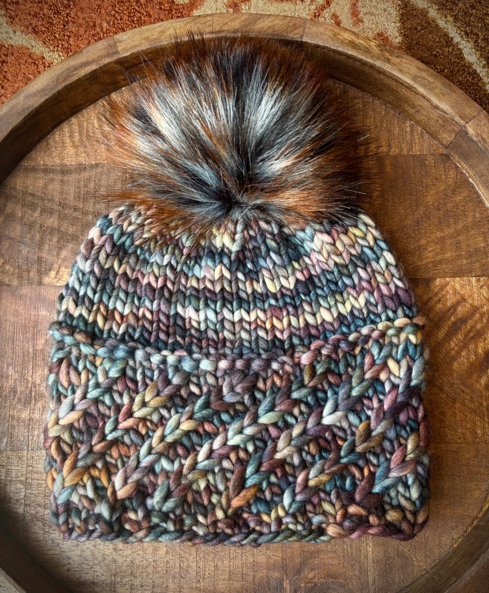 Alpine Twist Beanie | LUXURY Handmade 100% Merino Wool Knit Beanie | Malabrigo Rasta | Detachable Faux Fur Pom Pom | ADULT size | Ready To Ship
