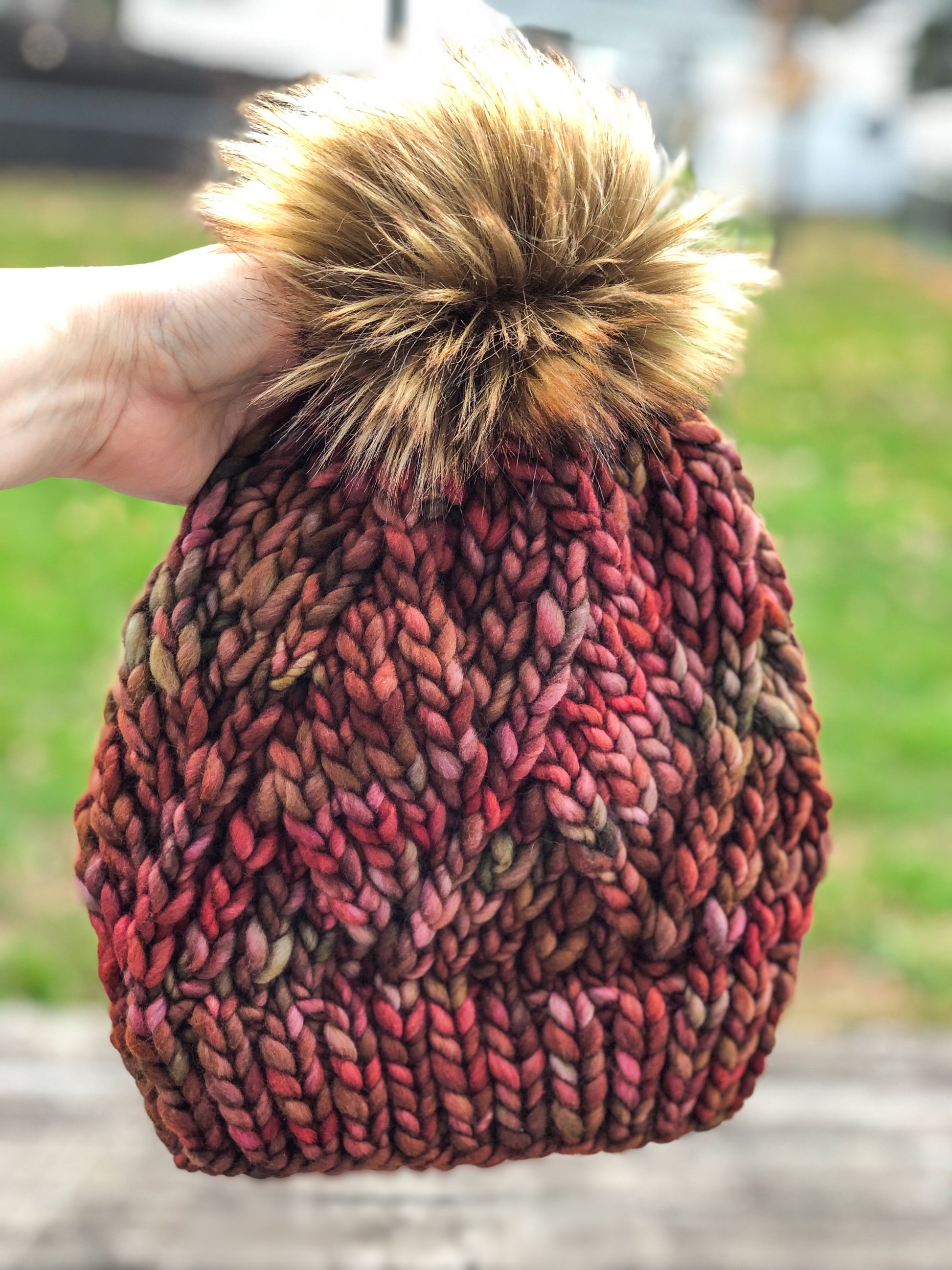 Diamond Twist Beanie | LUXURY Handmade 100% Merino Wool Knit Beanie | Malabrigo Rasta | Detachable Faux Fur Pom Pom | ADULT size | Ready To Ship