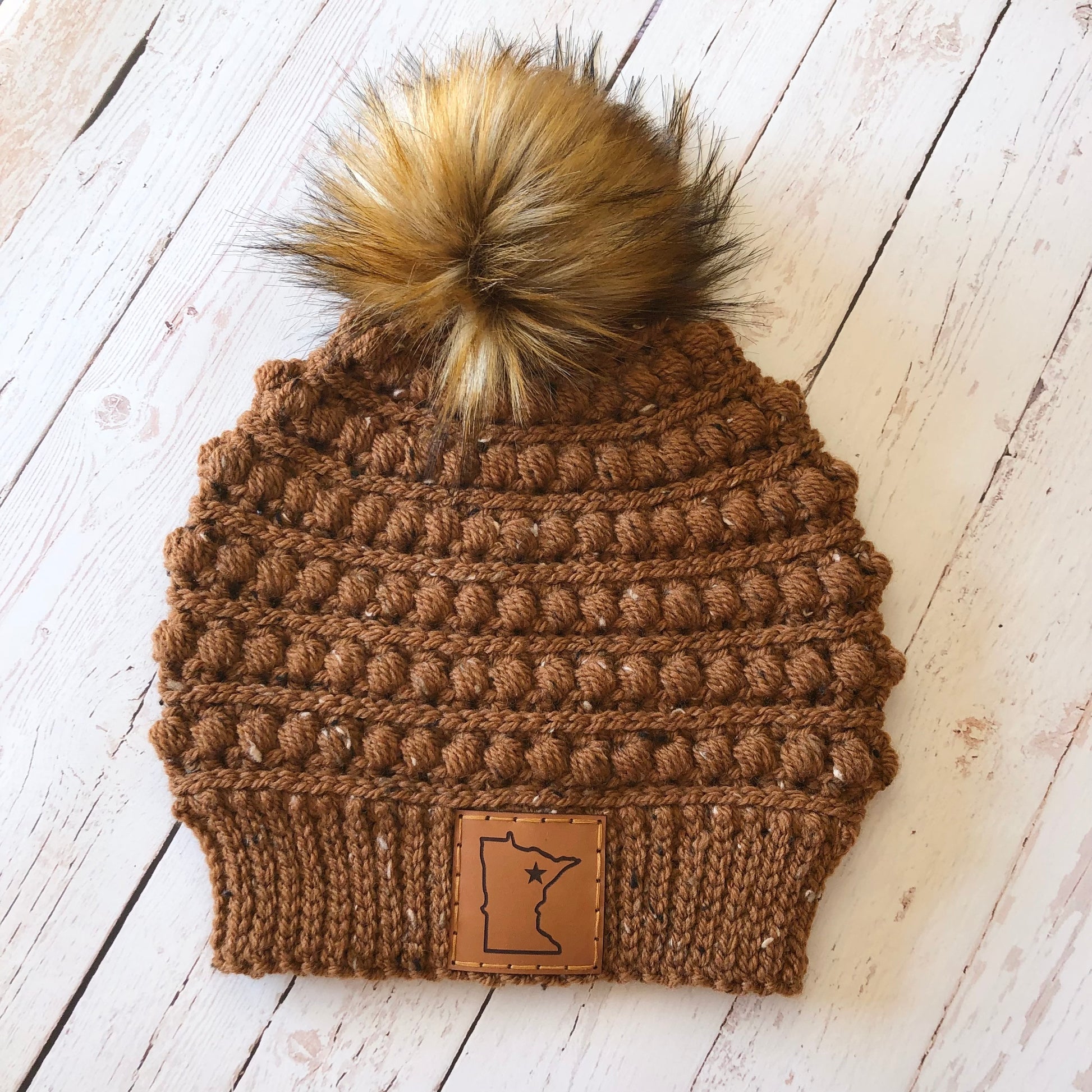 Premium Handmade Crochet Beanie in Various Colors | Gramercy Slouch with Minnesota Patch | Wool Blend | Detachable Faux Fur Pom Pom | Ready To Ship