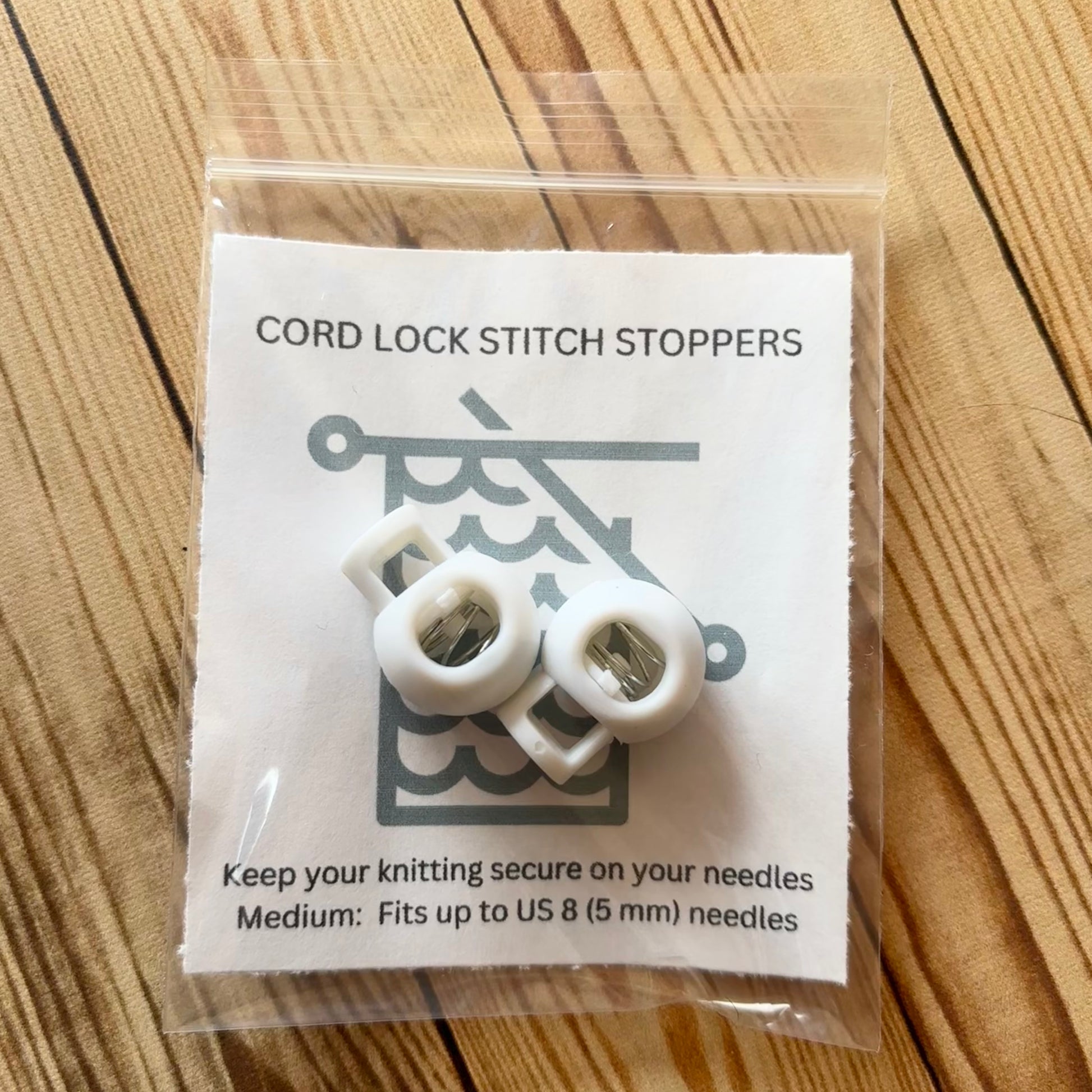 Size: "Medium" fits needles up to US 8 (5 mm). 2 stitch stoppers per package. More sizes coming soon.