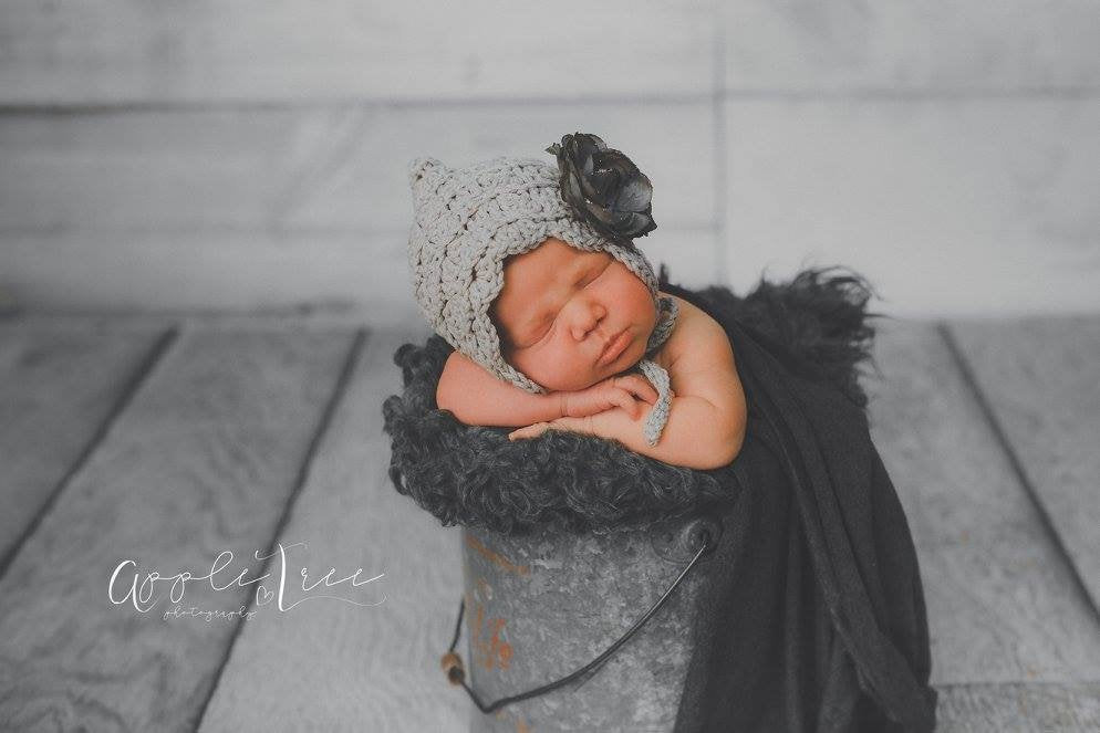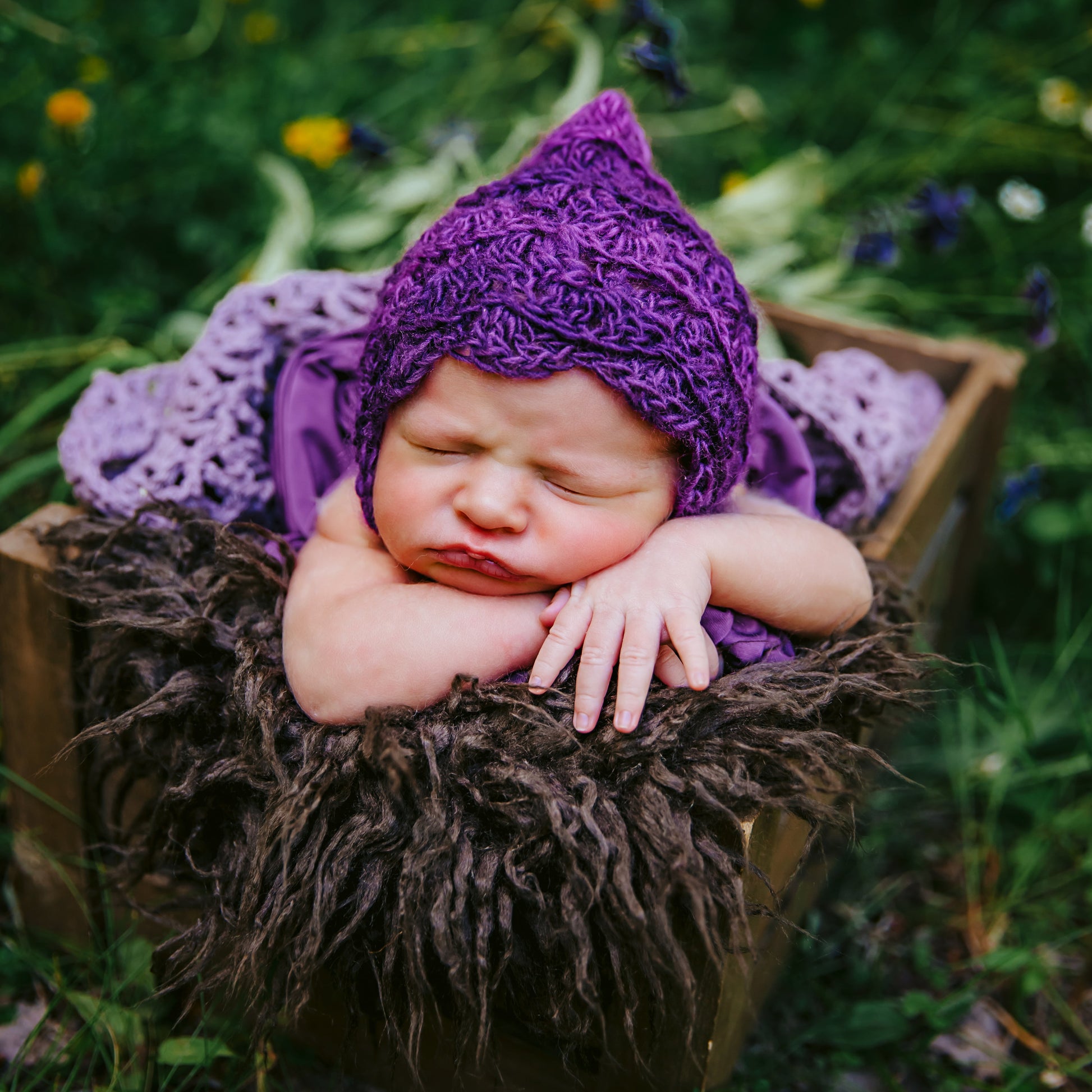 This is a PDF crochet pattern for a textured shell pixie bonnet in 7 sizes. This would make a great prop for a photo session for an amateur or a professional photographer.
