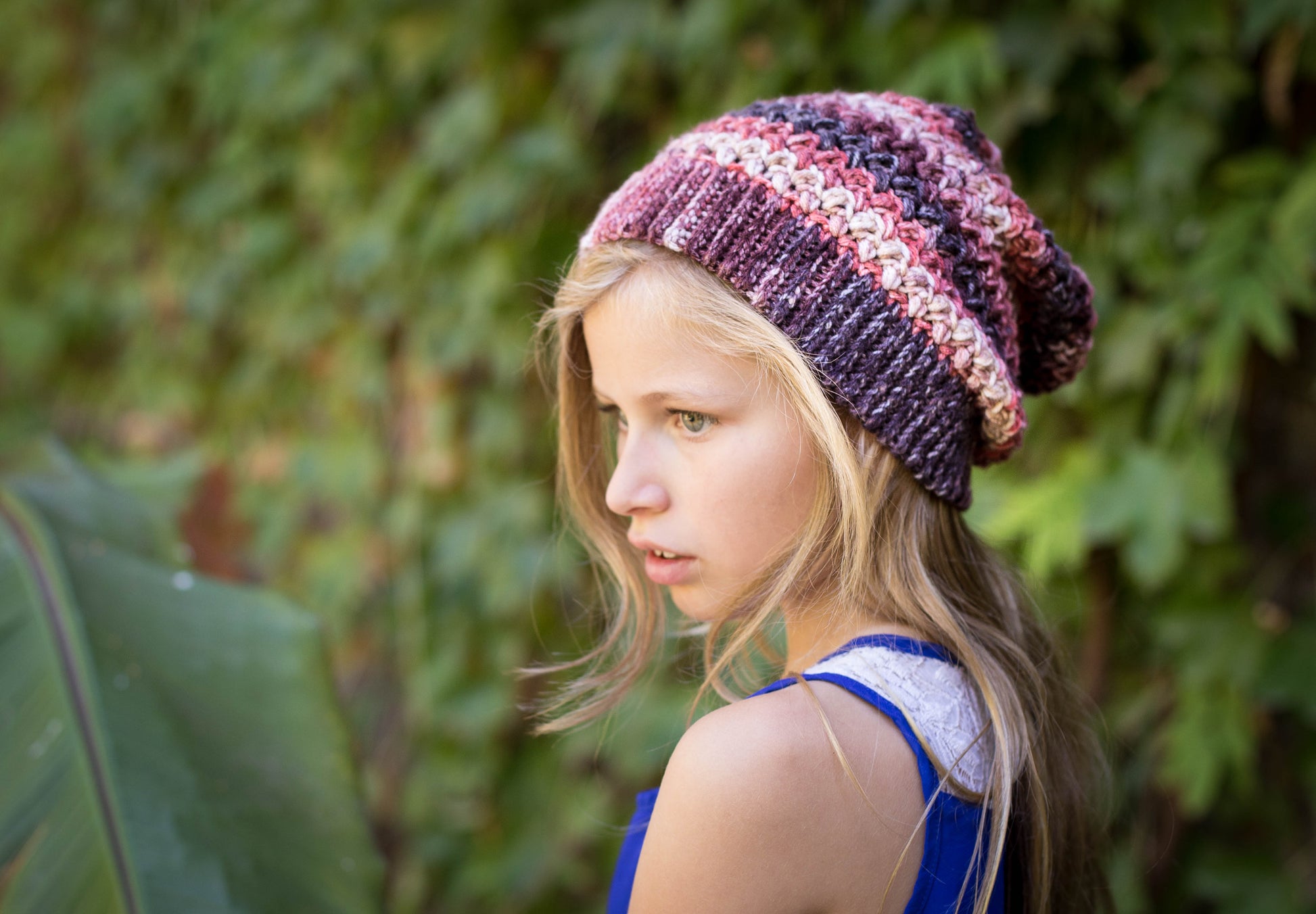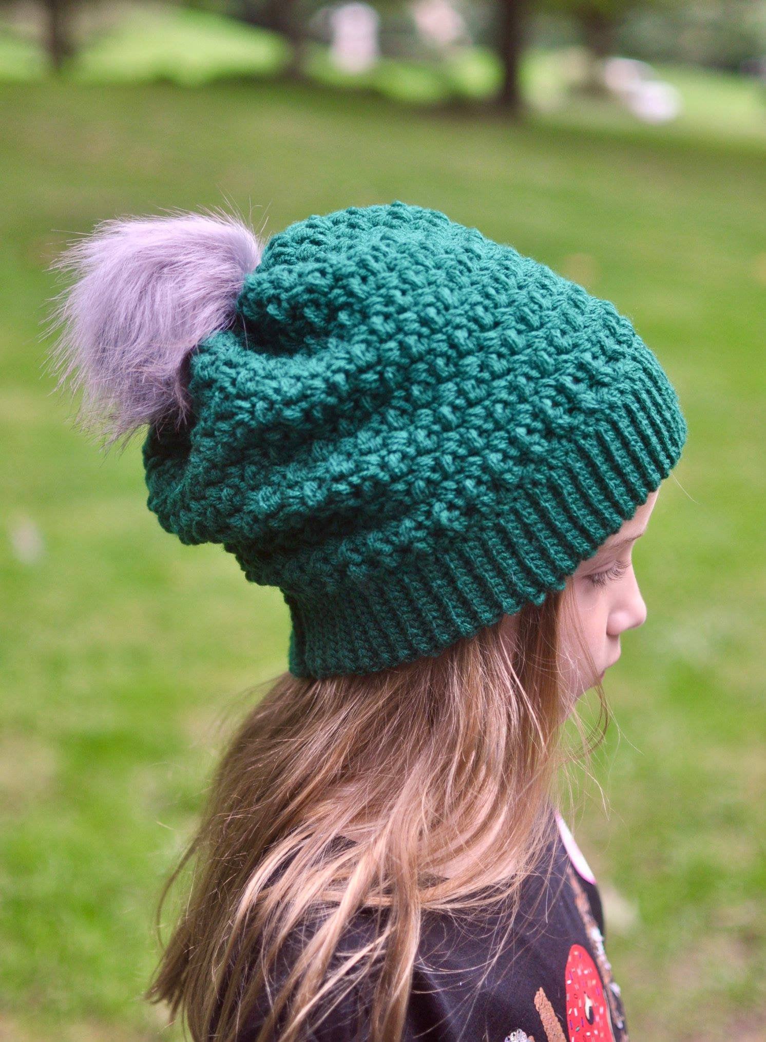 This is a PDF crochet pattern for a textured slouch worked from the bottom up, with a slip stitch ribbing for a knit look.