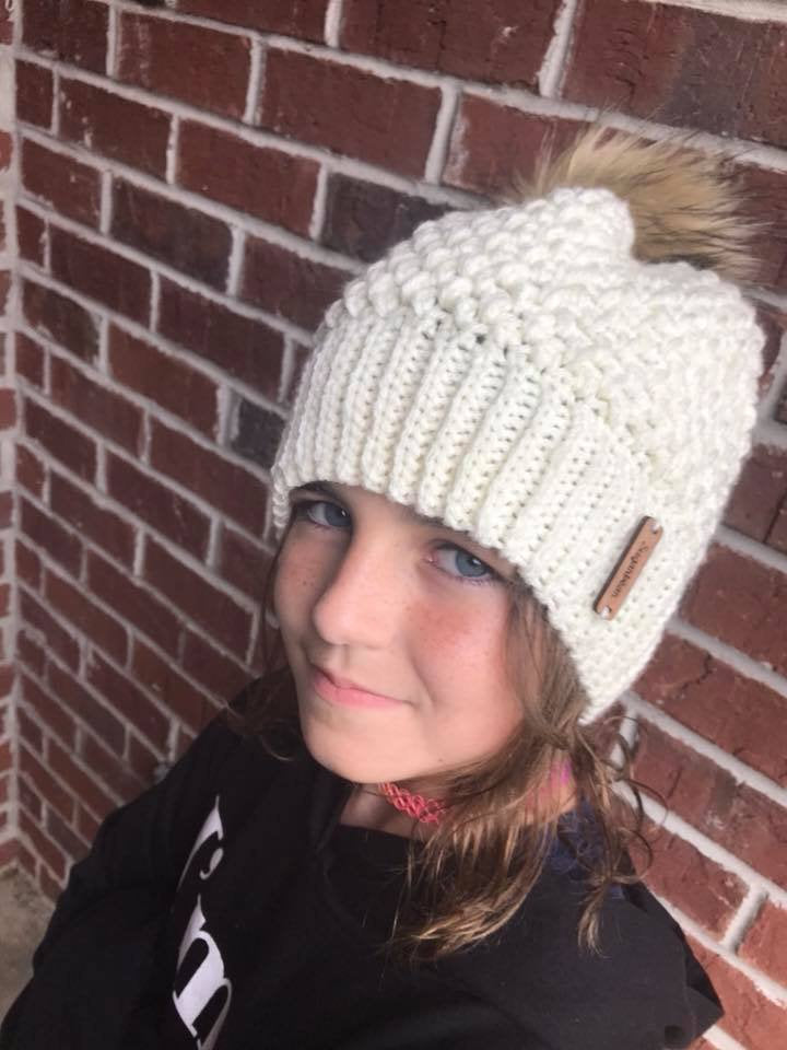 Notions: stitch marker, measuring tape, yarn needle, pom pom or pom pom maker (optional)
