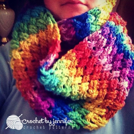 Diagonal Weave Infinity Scarf (or Cowl) Pattern by Crochet by Jennifer, available at www.crochetbyjennifer.com