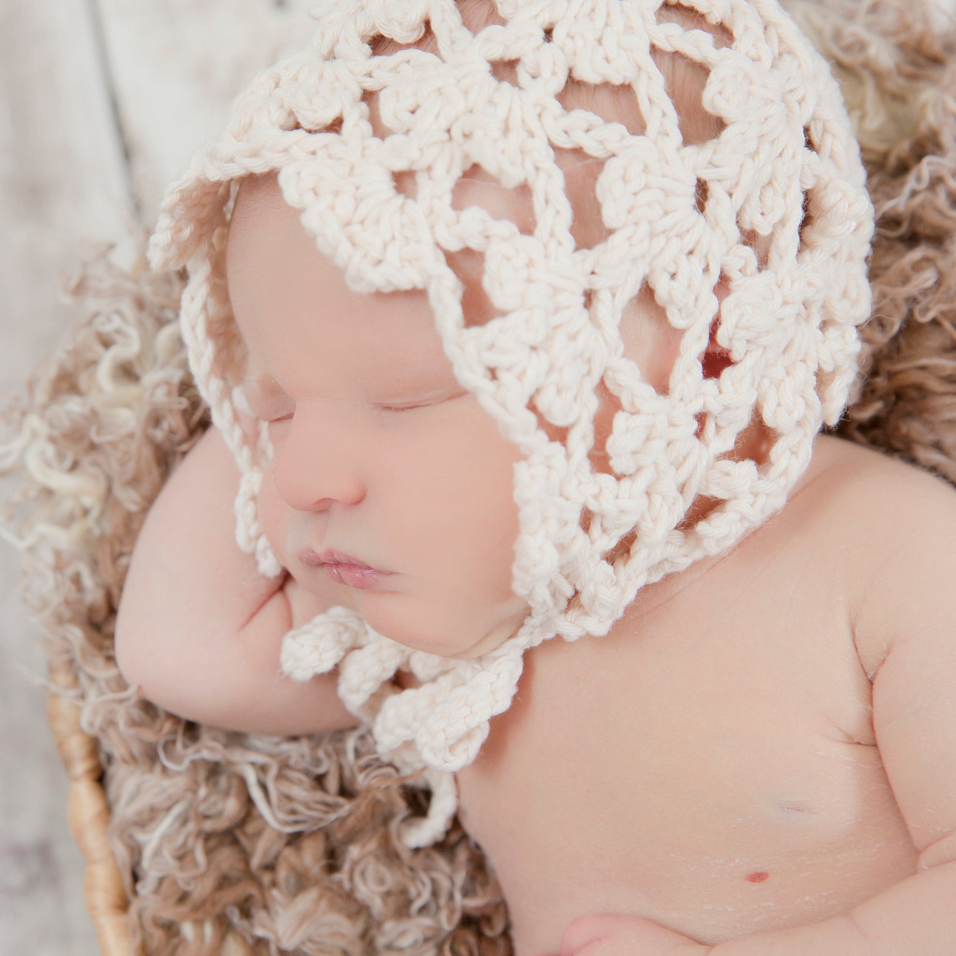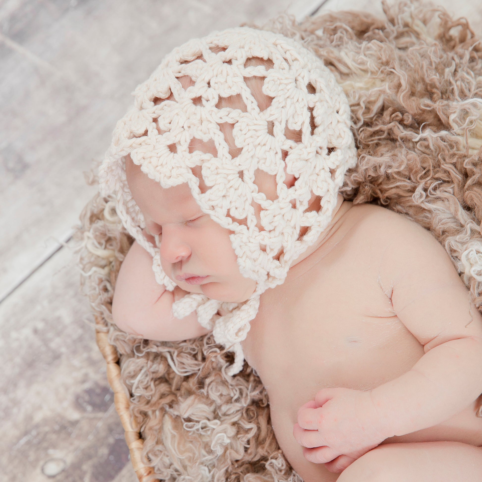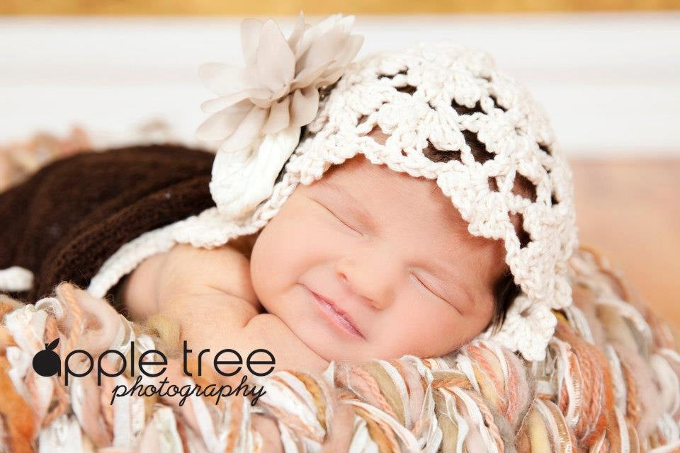 Fleurette Baby Bonnet Pattern by Crochet by Jennifer, available at www.crochetbyjennifer.com