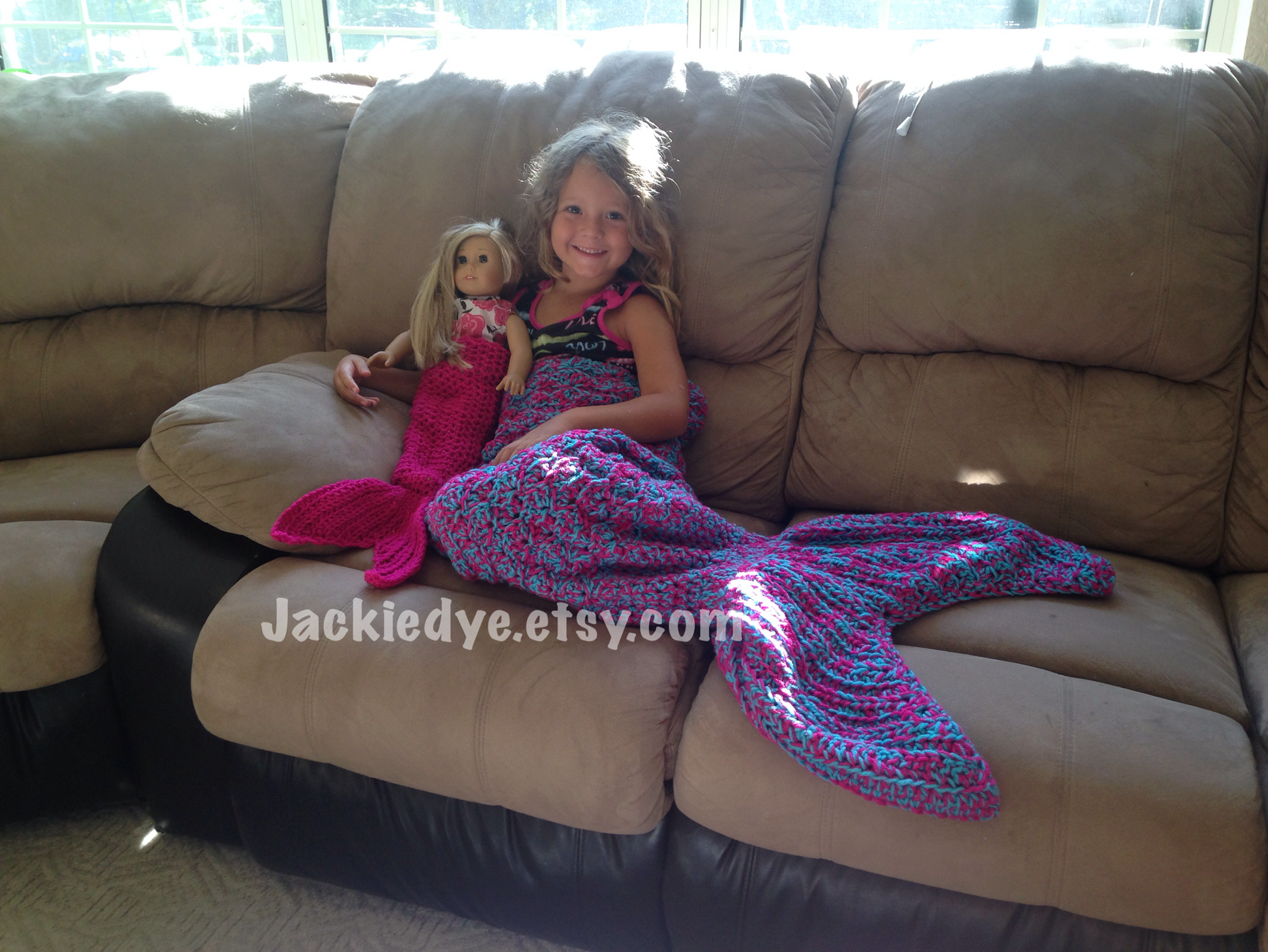 This pattern includes specific directions for toddler, child, and adult. The sizes are very broad as it is a blanket and not clothing. NEW BONUS SIZE ADDED! Now includes instructions for 18" doll sized tail.