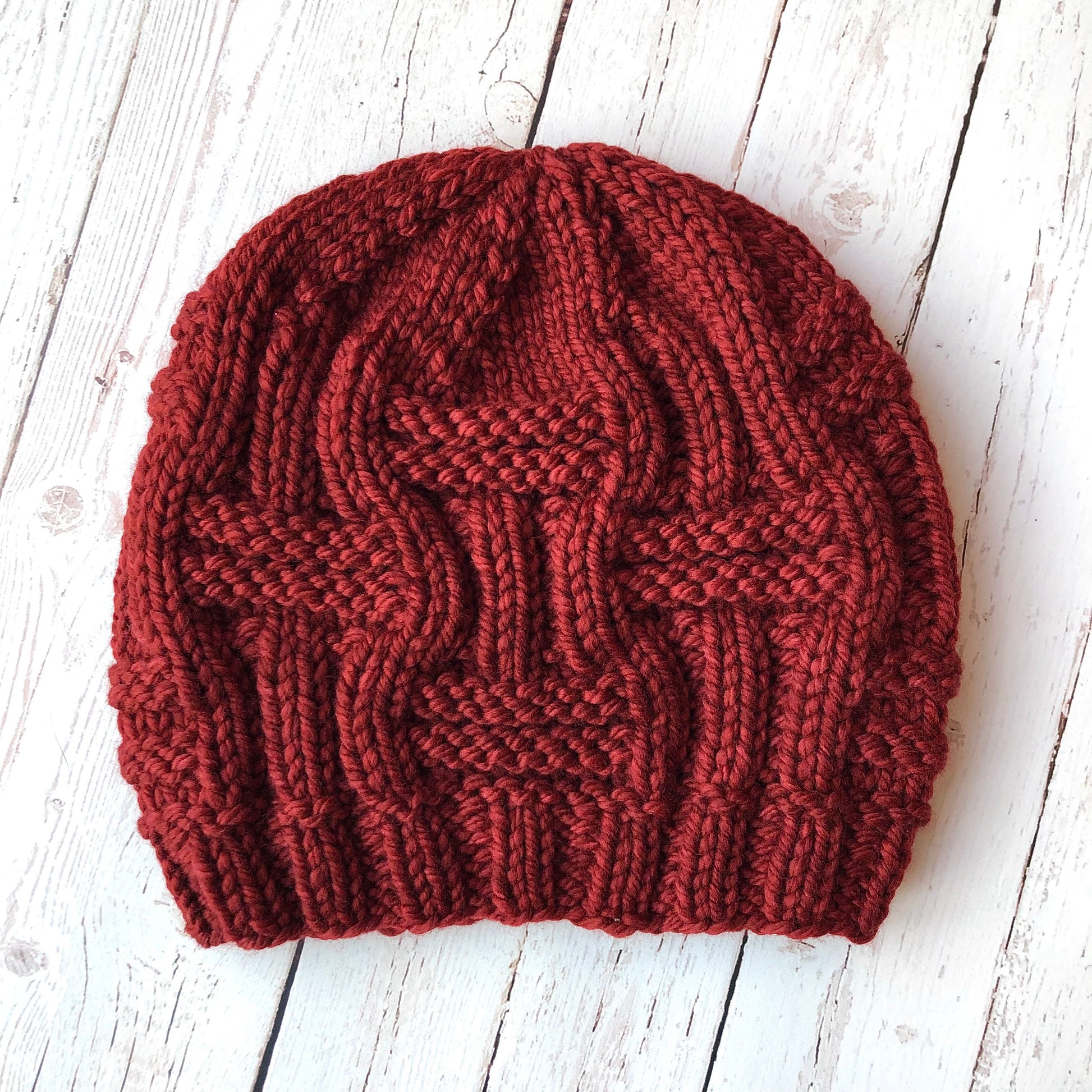 Pattern: Would you like to knit your own hat? To purchase the knit pattern, see the Double Basket Weave Beanie knit pattern.