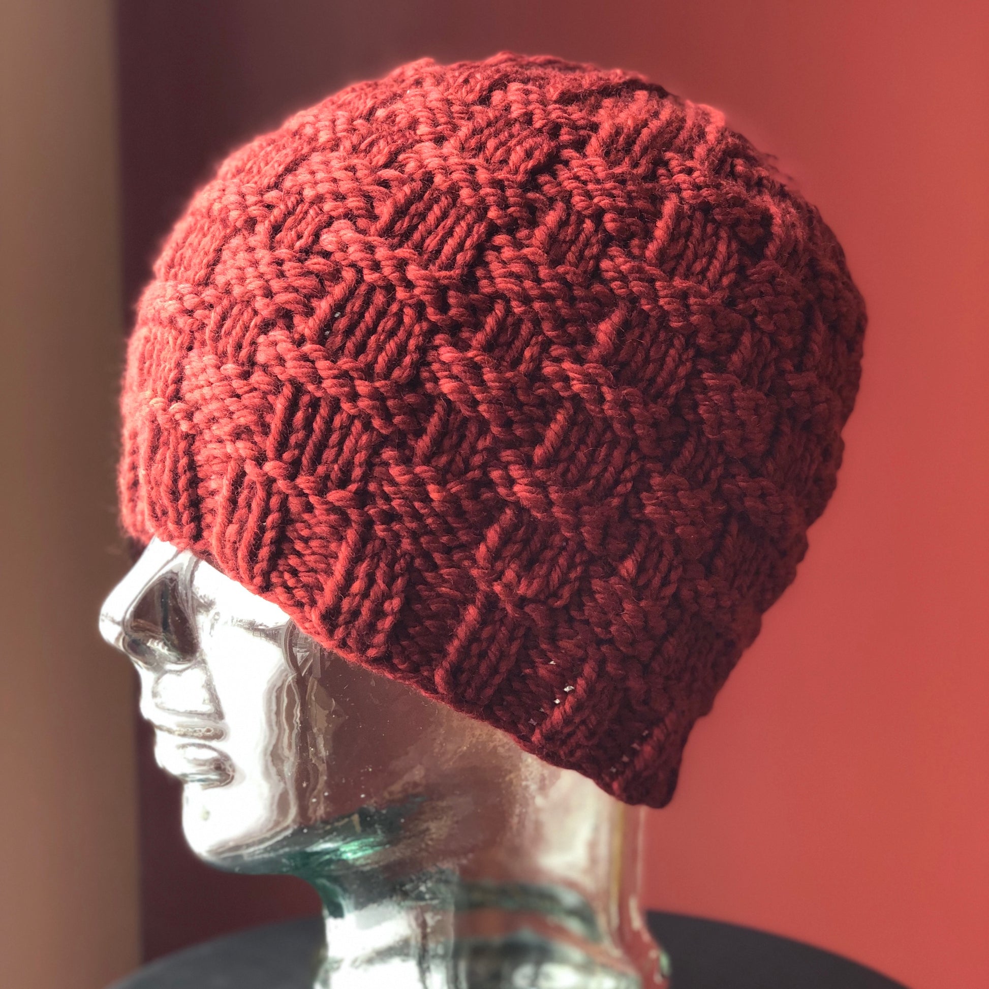 This is a PDF knit pattern for a textured beanie worked from the bottom up in traditional knit basket weave stitches. This pattern uses #5 chunky or #6 super bulky yarn and includes 3 sizes. This pattern includes 2 variations on basket weave stitch for each yarn weight so it's like 4 patterns in one.
