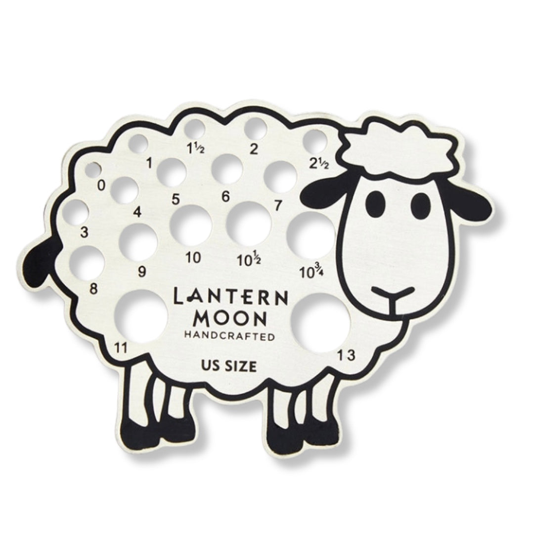 Let this charming little sheep-shaped metallic knitting needle gauge determine the accurate size of your knitting needles and hooks. US standard sizes are shown on one side, with metric measurements on the reverse. A perfect tool of size 2.5" x 2" to measure your needle sizes.
