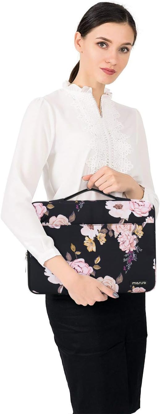 LAPTOP CASE: Protective Laptop Sleeve Compatible with MacBook Air 13 inch Laptop, Peony Bag with Belt, Black