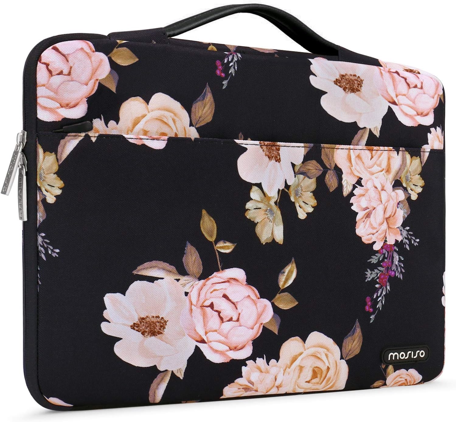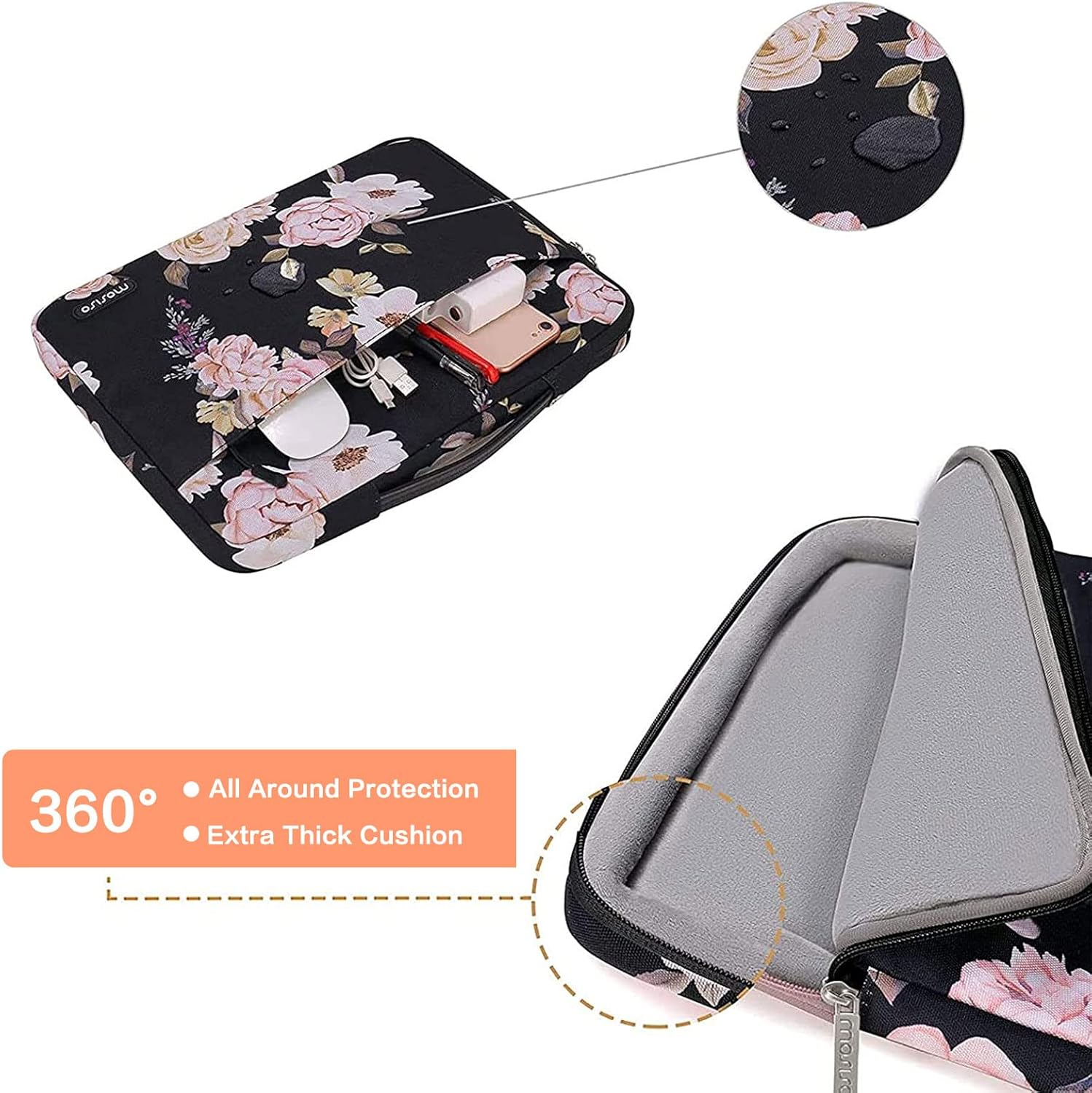 - 360 degree all around protective reinforced interior edge protects your laptop from any accidental dropping. Extendable handle design makes it easy to carry your laptop around in comfort. Side opening zipper design, avoid accidental dropping of your laptop while carrying. Special peony flower design.