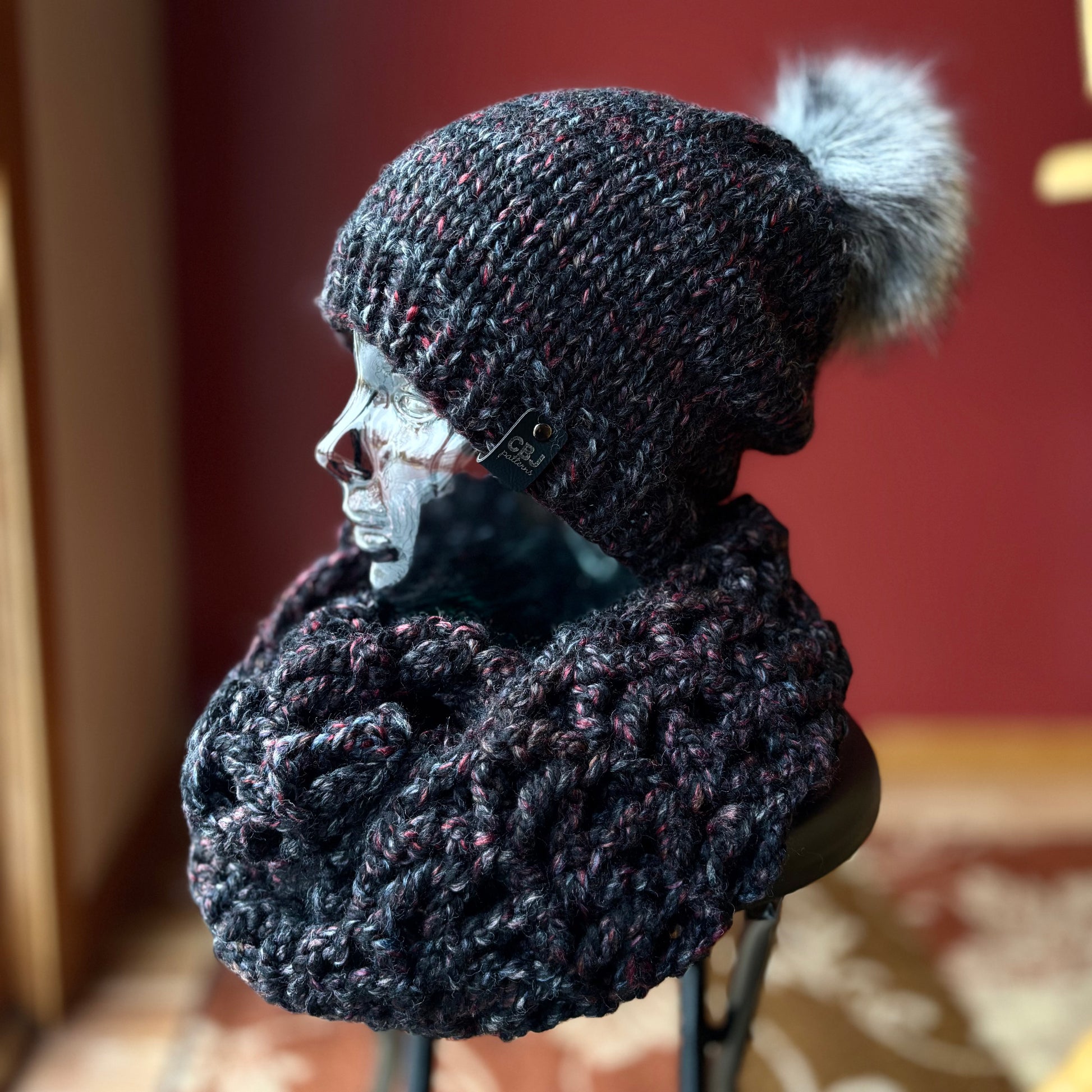 Premium Handmade Beanie & Cowl Set | Detachable Faux Fur Pom Pom | ADULT size | Ready To Ship