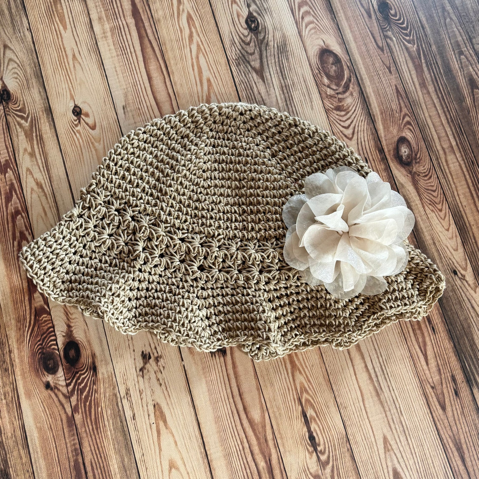 Premium Handmade Sun Hat | Baby Size | Detachable Faux Flower | Ready To Ship