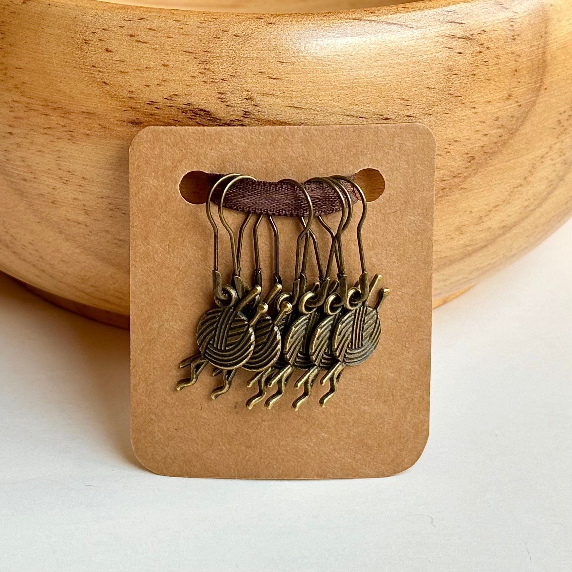 Stitch Markers: Ball of Yarn with bronze or silver finish (sets of 5 or 6 markers)