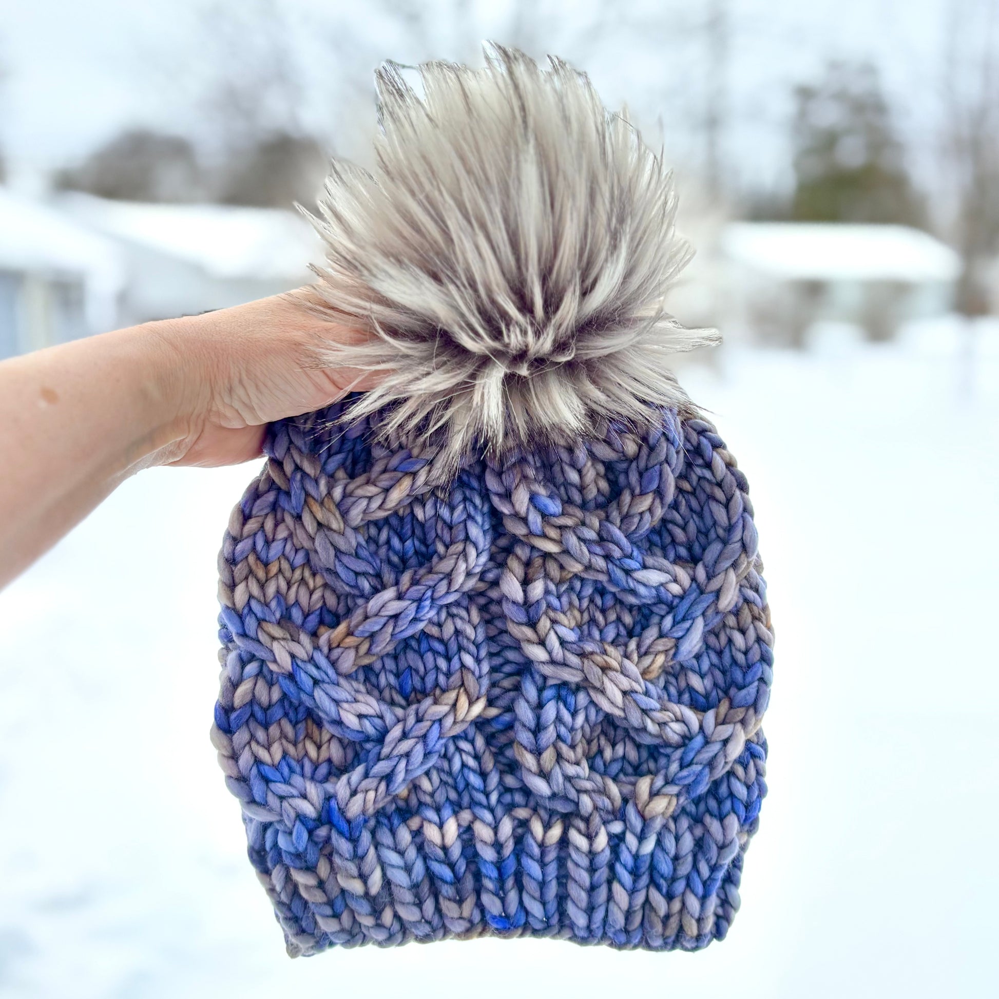 Wandering Cables Beanie | LUXURY Handmade 100% Merino Wool Knit Beanie | Malabrigo Rasta | Detachable Faux Fur Pom Pom | ADULT size | Ready To Ship
