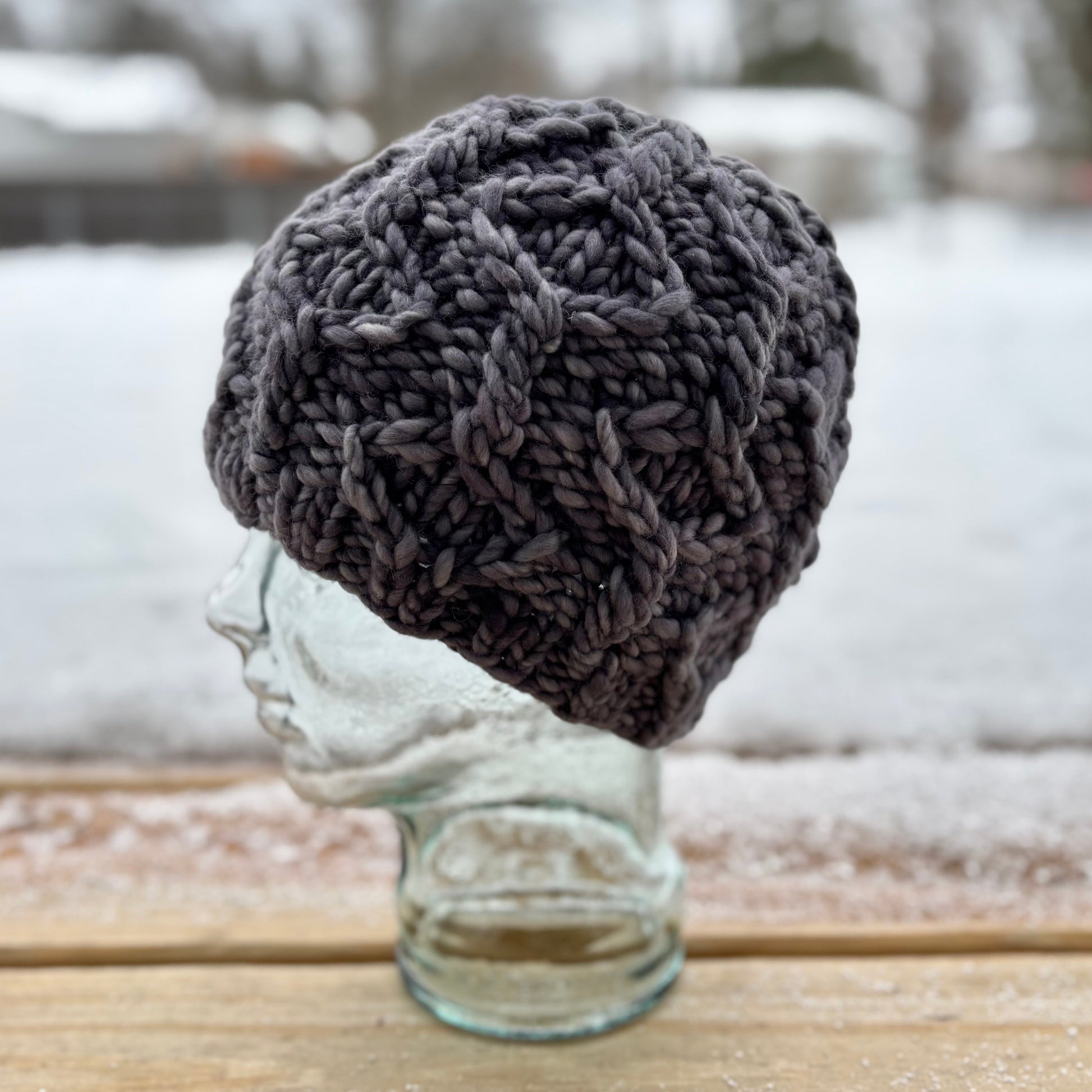 Pattern: Would you like to knit your own hat? To purchase the knit pattern, see the Wine Twister Beanie pattern.